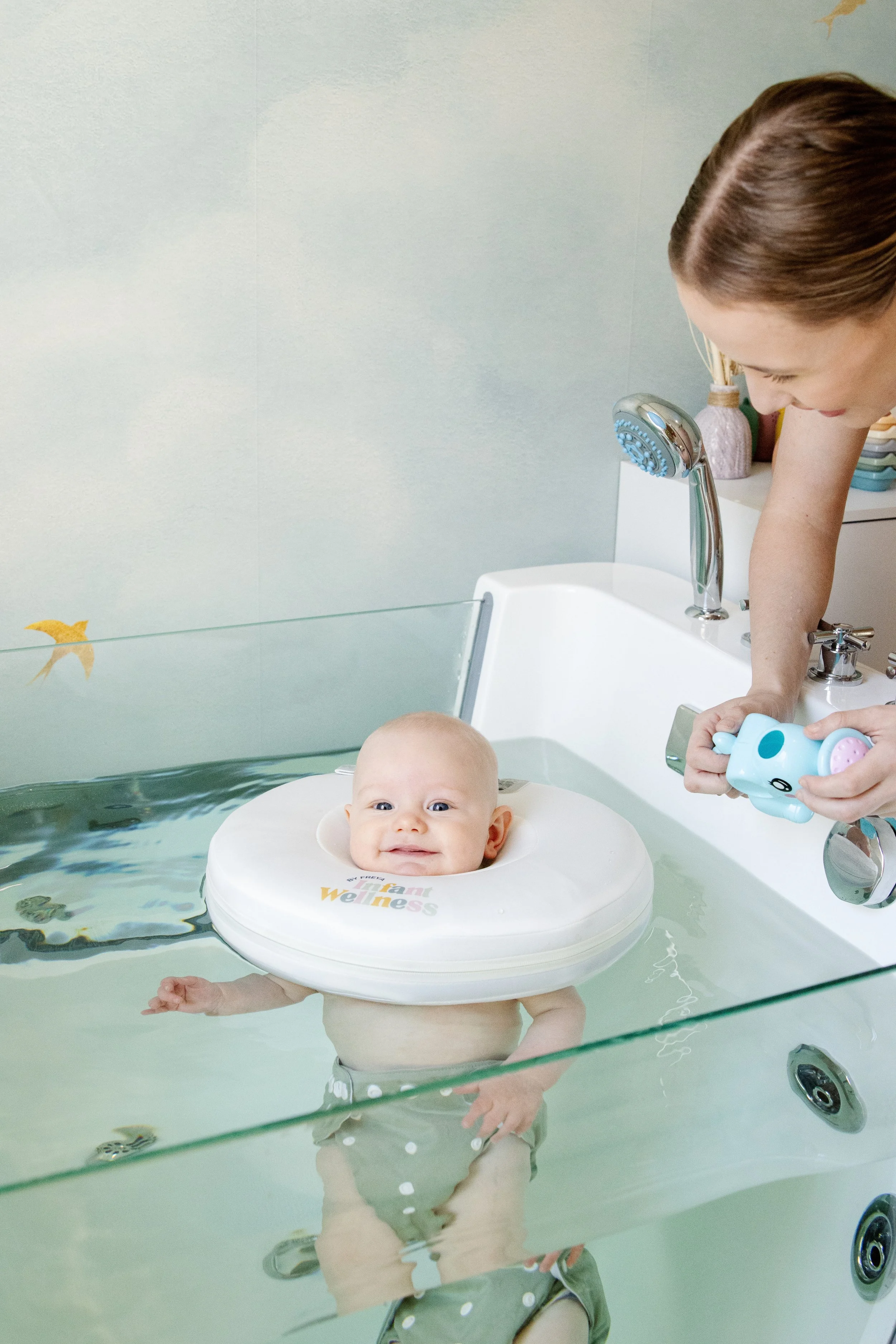 Safety is always our top priority. We only use certified infant floats that are designed for professional use. Your baby is never left unattended — all sessions are supervised by trained staff, and parents remain present at all times. Our floats are completely safe and provide wonderful developmental and relaxation benefits.
