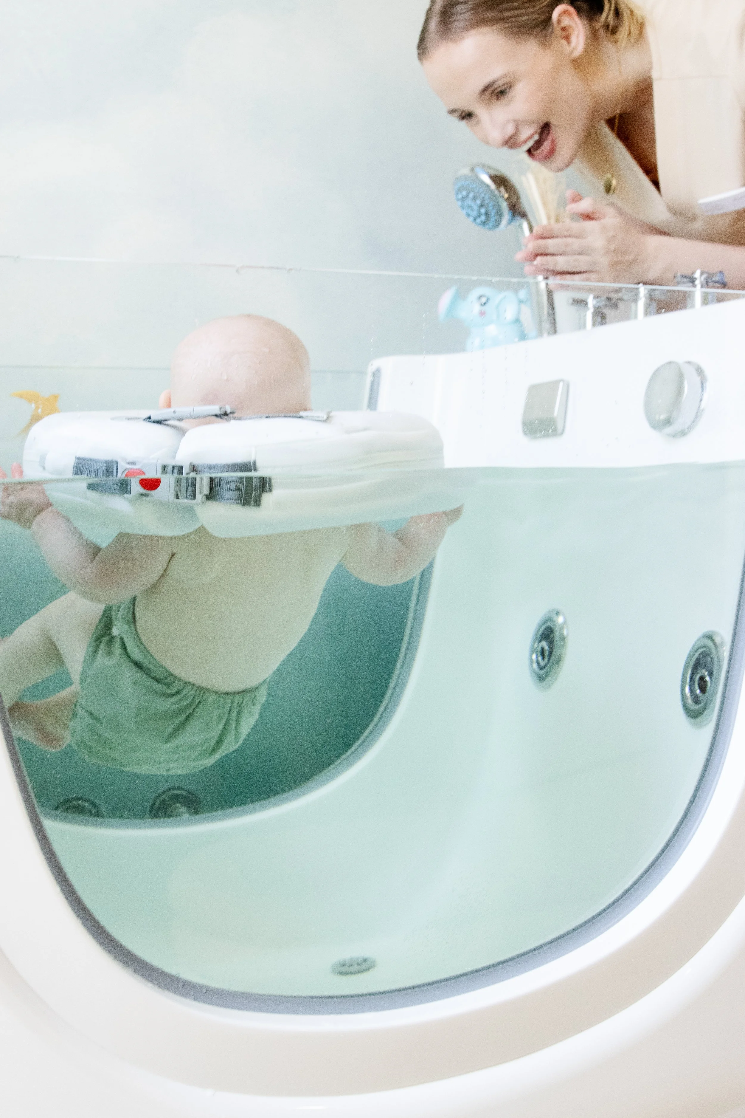 Our signature service, designed to support both your baby’s physical and emotional development. Each 45-minute session includes up to 30 minutes of gentle floating in our hydrotherapy pods, followed by a parent-guided massage taught by our trained team.